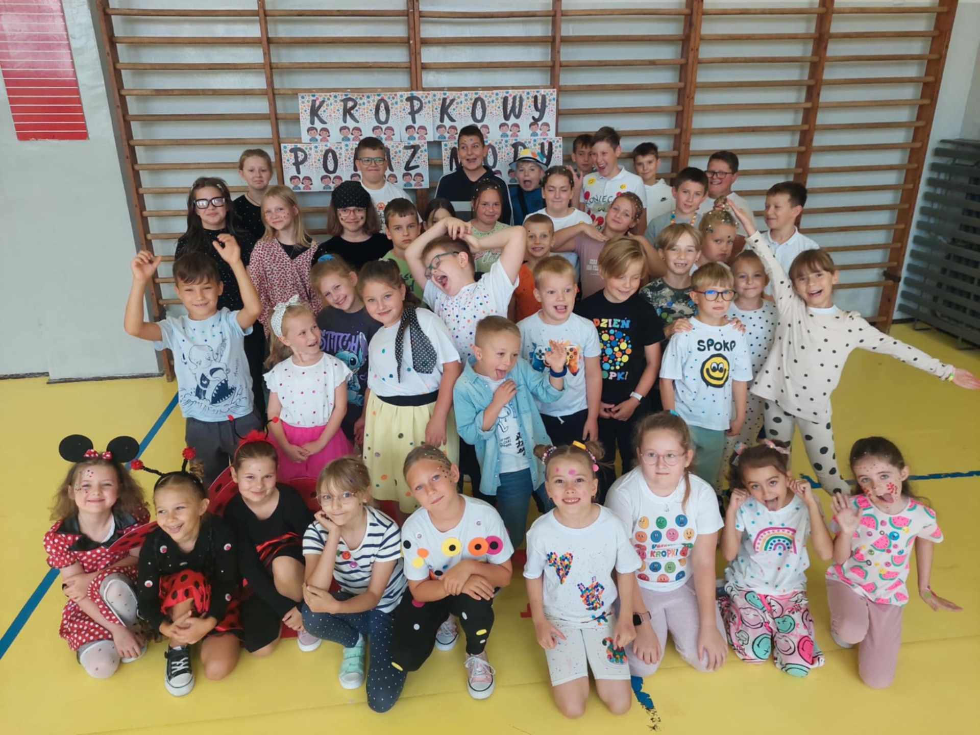 tworzyli własne kropkowe dzieła sztuki, Jednak najważniejsze w tym tygodniu było otworzenie się na nowe wyzwania i poznanie siebie wzajemnie. Kulminacyjnym punktem wydarzenia był kropkowy pokaz mody, w którym uczniowie zaprezentowali swoje niezwykłe, kolorowe stylizacje w grochy. ![]()