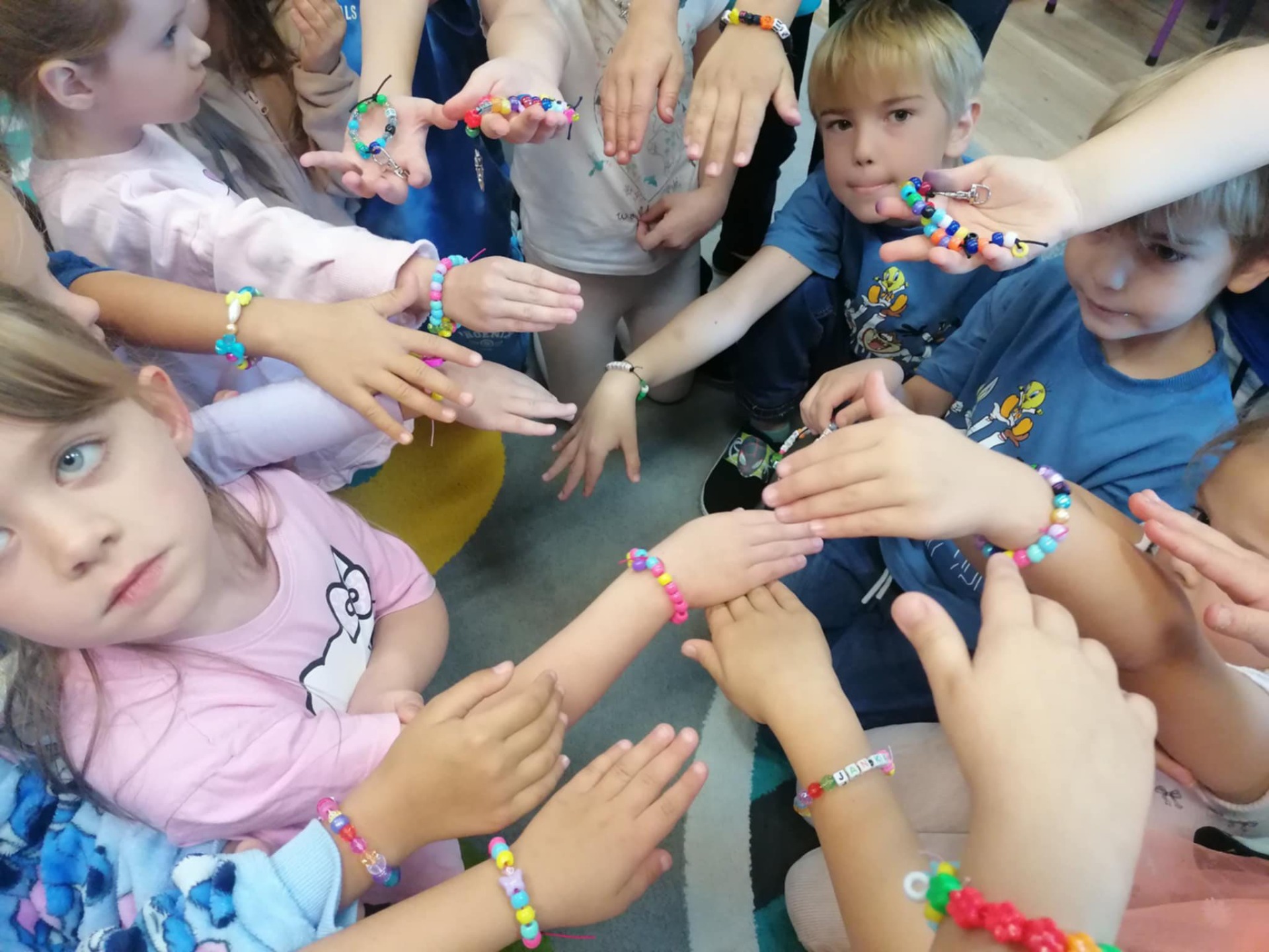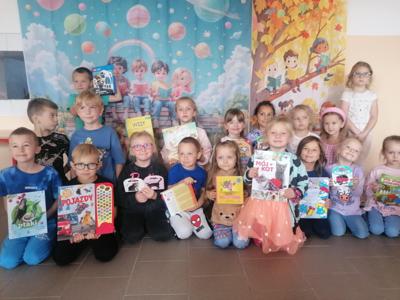 Dzieci z radością i zaangażowaniem uczestniczyły w zajęciach zorganizowanych przez Bibliotekę w Zągotach i naszą niezastąpioną Ciocię Kasię, W tym roku dzieci poznały książkę o 'Kolorowym Potworze", który próbuje poradzić sobie ze swoimi emocjami. Dzieci na zajęciach poznały ciekawe sposoby sprzyjające wyciszeniu np. zabawy gniotkiem, wąchanie perfum, przytulanie maskotek, kolorowanie mandali, głaskanie ulubionych zwierząt, ćw. oddechowe itp. Najbardziej jednak przedszkolaki zaangażowały się w relaksacyjne tworzenie biżuterii - bransoletek I zawieszek. Na koniec czekała na dzieci słodka niespodzianka i dyplomik.