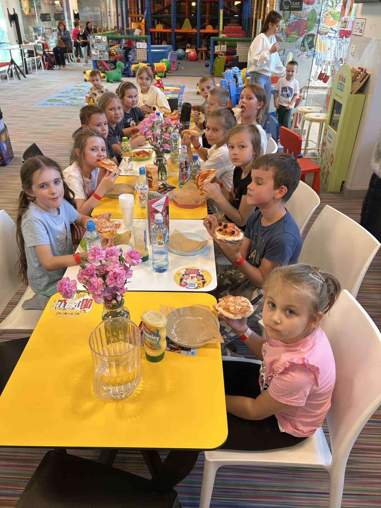 26 września klasy I-III były na wycieczce w Płocku w sali zabaw Fikołki. Uczniowie uczestniczyli w warsztatach kulinarnych. Pizza to jedno z najbardziej lubianych dań na całym świecie. Jest znana i kochana przez dzieci i dorosłych, a jej różnorodność sprawia, że każdy znajdzie coś dla siebie. Uczniowie wspólnie przygotowali pizzę, ugniatając i wałkując ciasto w serowo- pomidorowej drużynie, a gdy pizza trafiła do pieca mali kucharze brali udział w zajęciach sportowych . Mieli możliwość spróbowania swoich sił na ściance wspinaczkowej. Dużo wrażeń przyniósł czas spędzony na konstrukcjach i laserach.