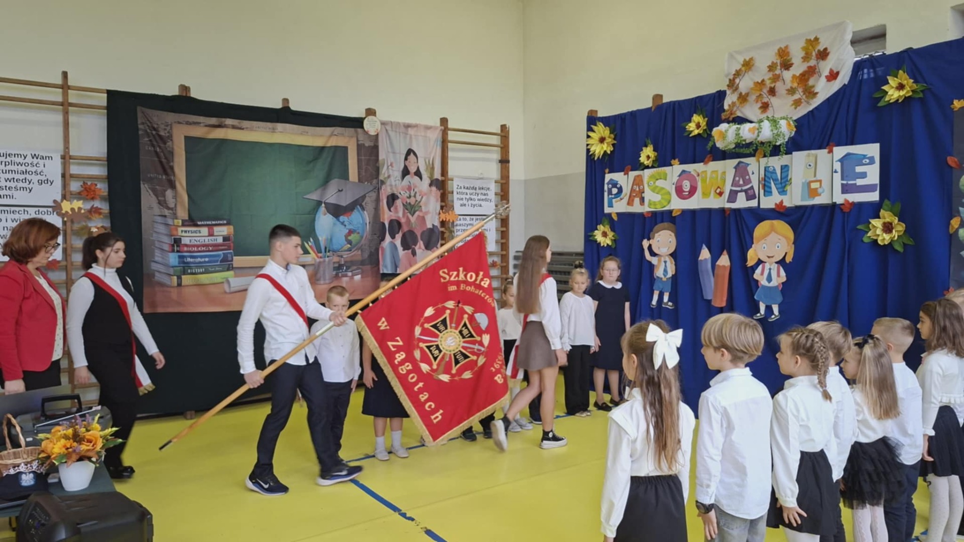 16 października 2025r. odbyło się uroczyste Ślubowanie dzieci klasy pierwszej połączone z pasowaniem na ucznia Szkoły Podstawowej im. Bohaterów Września 1939r w Zągotach. Uczniowie zaprezentowali program artystyczny, w którym recytowali wiersze i śpiewali piosenki. Po część artystycznej, nastąpił najważniejszy moment całej uroczystości, a mianowicie, złożenie przez dzieci uroczystego aktu ślubowania oraz Pasowanie na Uczniów, którego dokonała Pani Dyrektor. W ten sposób pierwszoklasiści zostali oficjalnie włączeni do grona Uczniów Szkoły Podstawowej w Zągotach. Ukoronowaniem aktu pasowania było wręczenie pamiątkowych dyplomów i upominków. Gratulujemy wszystkim pierwszoklasistom i życzymy im samych sukcesów oraz wielu wspaniałych chwil spędzonych w murach naszej szkoły!