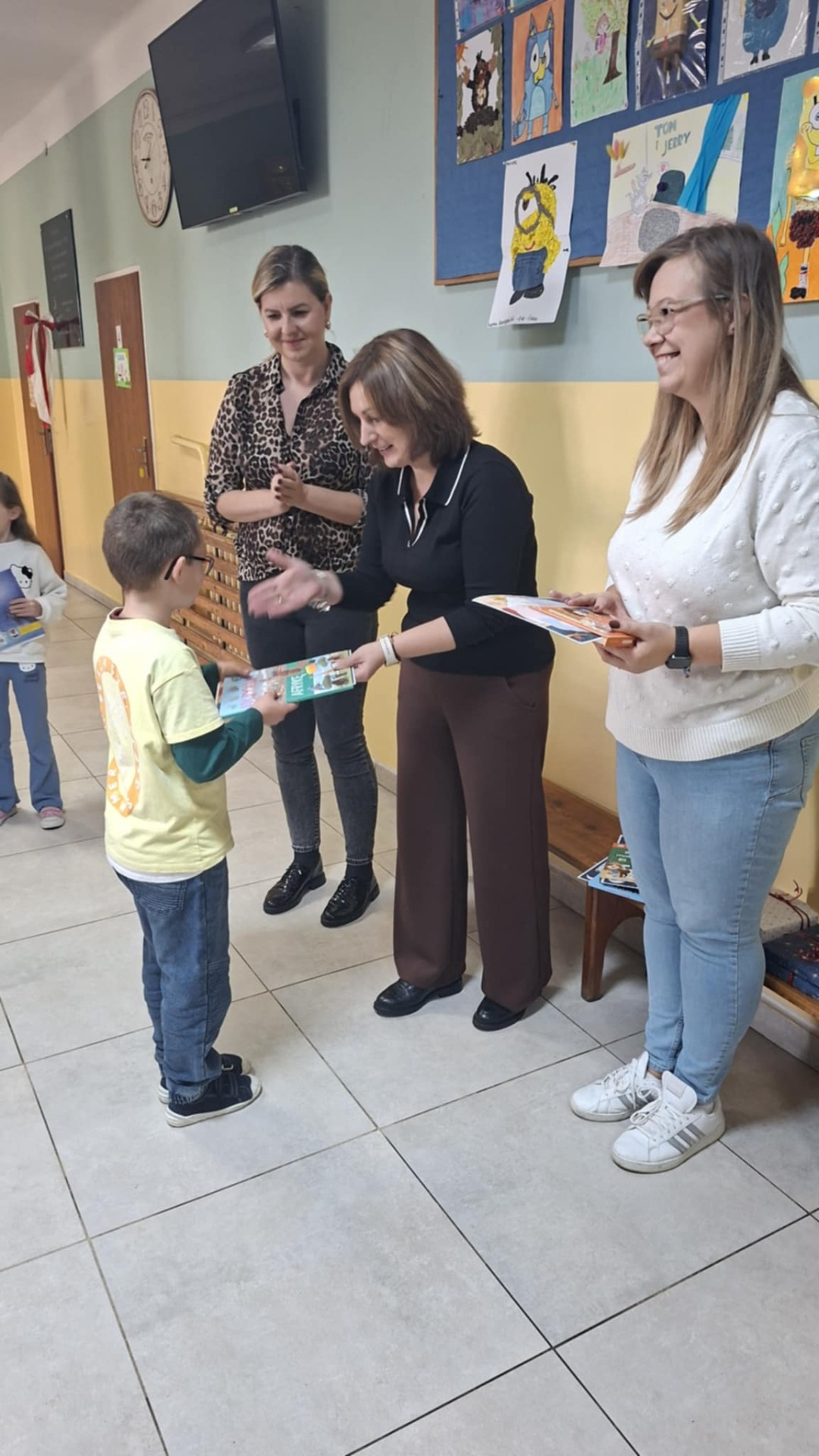 Uczniowie klas I–III wzięli udział w konkursie plastycznym „Moja ulubiona postać z bajki”, zorganizowanym przez panią Sylwię Karpińską i panią Renatę Ziółkowską. Napłynęło bardzo wiele pięknych i pomysłowych prac, które zachwyciły jury. Za wsparcie w zakupie nagród serdecznie dziękujemy pani dyrektor Sylwii Bylickiej oraz Radzie Rodziców. Tego dnia obchodziliśmy również Światowy Dzień Postaci z Bajek. Z tej okazji klasy I–III uczestniczyły w szkolnym kinie, gdzie obejrzały bajkę „W rytmie dżungli”. Seans upłynął w miłej atmosferze – dzieci otuliły się kocykami, przyniosły ulubione poduszki i pluszowe misie, a dodatkową atrakcją był popcorn i słodkości. To był dzień pełen uśmiechu, dobrej zabawy i bajkowej magii! Ogromne podziękowanie dla wolontariuszy, którzy pomogli w organizacji!